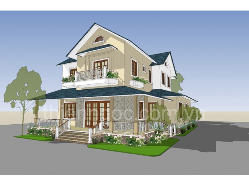 -Quy mô : 1 trệt + 1 lầu + mái BTCT lợp ngói